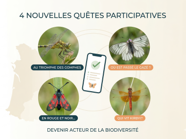 Le CEN Nouvelle-Aquitaine lance 4 quêtes participatives sur l'Observatoire FAUNA ! Gomphes, Trithemis kirbyi, Zygènes ou Gazé : aidez-nous à recenser ces espèces clés. Grâce à l’application mobile ou sur la plateforme FAUNA, saisissez vos données sur le terrain avec des formulaires intelligents et sur-mesure.