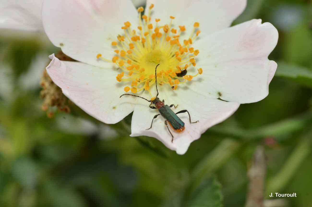 Adultes floricoles, surtout présents en mai et juin. Saproxylique, avec un cycle de deux ans, la larve se développe dans des branches mortes de petits diamètres de divers arbres et arbustes feuillus, en particulier le chêne vert et le chêne liège.