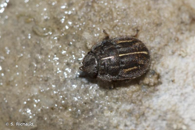 Taille : 4,5 – 6,5 mm Diagnose : Petite punaise arrondie et globuleuse, dont le scutellum recouvre les ailes et l’abdomen en atteignant son extrémité. Sa tête est plus large que longue. Son corps est couvert de poils courts argentés et sa coloration sombre et mate varie du marron clair au noir avec parfois sur le scutellum 2 lignes longitudinales plus claires surlignées de noir. Détermination : Moyennement difficile. Espèces proches : Espèce proche d’Odontoscelis fuliginosa qui est plus grande avec la pilosité du corps brune, jaunâtre ou noire. Les articles antennaires I et II clairs chez O. lineola sont noirs chez O. fuliginosa. Odontoscelis minuta, une autre espèce similaire absente de France mais géographiquement proche pourrait être présente en France. Mais pour les distinguer à coup sûr il faut disséquer et comparer les pièces génitales des mâles. Période d’observation : Avril à septembre, avec un pic en juin. Biologie-éthologie : Elle vit au sol au pied des plantes où elle se nourrit des graines tombées. Elle se nourrit de graines de géraniacées, mais elle doit être polyphage car elle a été observée parmi les graines sous la bugrane jaune, des cistes, des paronyques, et le trèfle Pied-de-lièvre Biogéographie et écologie : Espèce européenne absente d'Afrique du Nord, elle s'étend à l'est jusqu'en Turquie. Très localisée dans le sud de la Grande-Bretagne, elle remonte jusqu'à 56° de latitude nord au Danemark et en Suède. Elle est assez commune le long des littoraux sablonneux, et plus rare dans les terres le long des rivières. Les dunes constituent un habitat favorable à condition que la végétation reste éparse, mais également, les milieux secs et dénudés, les sols meubles sablonneux ou pierreux.