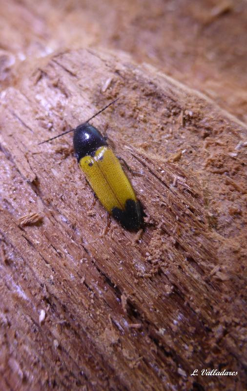 Diagnose : Corps allongé, convexe, luisant, avant-corps noir, les élytres jaune citron avec le quart apical noir. La pubescence est noire sur les parties sombres et claire sur la partie jaune des élytres. Les antennes courtes et fortement dentées dépassent à peine le bord postérieur du pronotum qui est régulièrement convexe avec les angles postérieurs fortement carénés. Les appendices sont brun-noir. La larve est filiforme et cylindrique (de type "ver fil-de-fer"), jaune orangée avec la tête et le dernier segment plus colorés. Identification : Assez facile. Confusions possibles : A. quadrisignatus, de coloration analogue, se distingue par sa taille supérieure et quatre points noirs en haut des élytres. Périodes d’observation (adultes) : Mai-juillet, en loge de septembre à avril. Biologie-éthologie : La larve prédatrice se développe dans la carie rouge de feuillus et de résineux. Les adultes se rencontrent sur les arbres. Biogéographie-écologie : Forêts de plaine et de montagne d’Europe septentrionale et centrale. Références : Leseigneur L., 1972. Coléoptères Elateridae de la faune de France continentale et de Corse. Bulletin mensuel de la Société Linnéenne de Lyon (supplément au numéro de février 1972) 41 : 1-381.