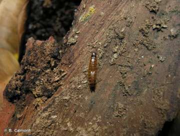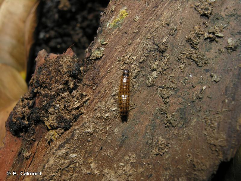 Diagnose : Corps linéaire, allongé, convexe, avant-corps noir brillant avec les élytres brun chocolat. La face supérieure est glabre. Les antennes courtes et robustes, faiblement dentées à partir du 4e article n'atteignent pas le bord postérieur du pronotum qui est peu convexe, aussi long que large, à côtés arrondis, avec les angles postérieurs étirés en pointes aigües divergentes. La ponctuation du pronotum est fine et éparse. Les antennes sont noirâtres, les pattes rougeâtres. Identification : Difficile. Confusions possibles : La plupart des autres Elateridae de couleur très sombre et de même stature sont moins brillants et n’ont pas les pointes postérieures du pronotum aigües et divergentes. Périodes d’observation (adultes) : Mai-juin. Biologie-éthologie : La larve est prédatrice et vit dans le bois carié des feuillus. Les adultes se rencontrent sous les écorces et sur les vieux arbres feuillus. Biogéographie-écologie : Forêts froides de plaine et de moyenne montagne de toute l’Europe. Références : Leseigneur L., 1972. Coléoptères Elateridae de la faune de France continentale et de Corse. Bulletin mensuel de la Société Linnéenne de Lyon (supplément au numéro de février 1972) 41 : 1-381.