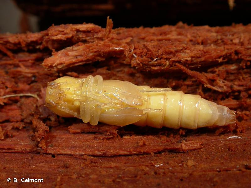 Diagnose : Corps très allongé, convexe, entièrement brun-noir. La pubescence est entièrement claire. Les antennes courtes et dentées à partir du 4ème article dépassent à peine le bord postérieur du pronotum qui est faiblement convexe avec les angles postérieurs fortement carénés. La ponctuation du pronotum est moyenne et peu dense. Les appendices sont rougeâtres. Les griffes sont pectinées. La larve est filiforme et cylindrique (de type "ver fil-de-fer"), jaune orangée avec la tête et le dernier segment plus colorés. Identification : Très difficile. Confusions possibles : Les griffes pectinées distinguent les Melanotus de tous les Elateridae de taille comparable. M. villosus a le pronotum plus convexe et plus densément ponctué. M. punctolineatus a le pronotum plus convexe à ponctuation grosse et dense. M. crassicollis a le pronotum très convexe et arrondi à ponctuation grosse et confluente. Périodes d’observation (adultes) : Juin-juillet. Biologie-éthologie : La larve prédatrice se développe dans la carie humide des résineux. Les adultes se rencontrent sur le feuillage et occasionnellement sur les fleurs. Biogéographie-écologie : Forêts de résineux de montagne d’Europe et d’Asie tempérée. Références : Leseigneur L., 1972. Coléoptères Elateridae de la faune de France continentale et de Corse. Bulletin mensuel de la Société Linnéenne de Lyon (supplément au numéro de février 1972) 41 : 1-381.
